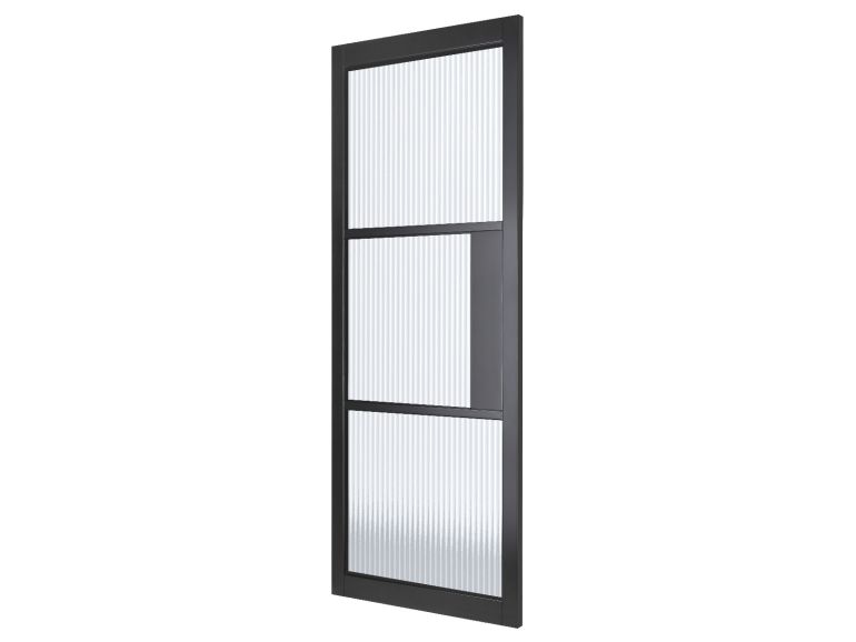 Defined by sharp, clean lines and refined recessed panel detailing, the Bergen Black 3-Light Reeded delivers understated sophistication. Its bold yet balanced design makes it the perfect statement door.