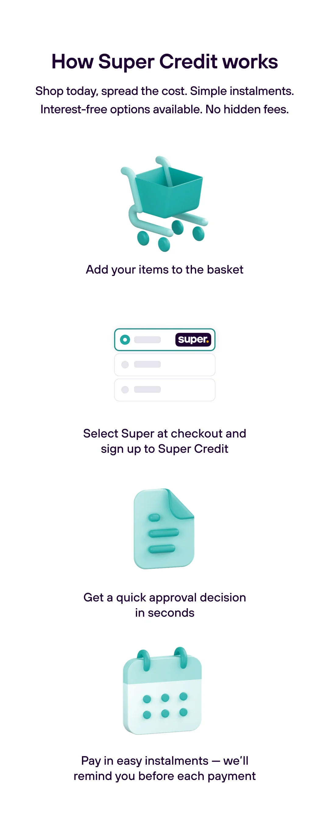 To find out more about Super Credit and if it's right for you, visit Super Credit support.