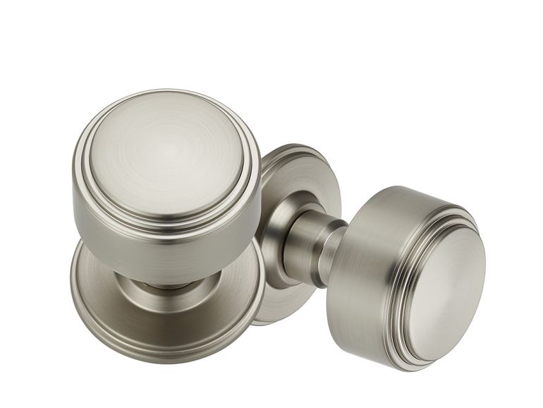 The Deco Door Knob is constructed from Brass and finished in Cool Brushed Nickel. Crafted for long-lasting performance, these door knobs are built to endure daily use and complement all of our internal doors.