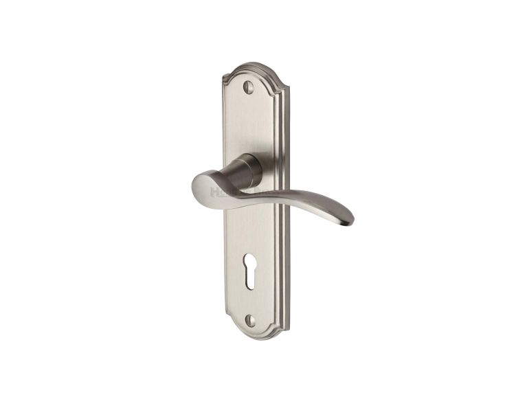 Heritage Brass Door Handle Lever Lock Howard Design Satin Nickel finish